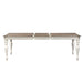 Gather in style with the Magnolia Manor rectangular leg table. Crafted of poplar solids with white oak and birch veneers, this piece features the perfect blend of European design with a weathered top, one 18-inch removable leaf, a fancy face veneer dining top, canted corners, and is anchored by faceted turned legs. Warm antique finishes and artistic distressing along with grand scale a group to be passed to generations.