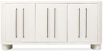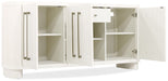 A curvaceous silhouette meets functional elegance in the Bar None Credenza. With soft-close doors, a silverware tray, and ample hidden storage, this piece shines in a crisp white finish over figured maple veneers—perfect for dining rooms or living spaces.