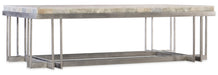 Sleek meets organic with the Marin Cocktail Table, featuring a pewter metal base and a tumbled white onyx tabletop for a fresh modern appeal.