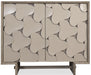 Artistic and eye-catching, the Pinwheel Hall Chest features a raffia-wrapped exterior and painted pinwheel motifs on the doors. Its internal shelves and clean-lined form make it ideal for soft modern or creative transitional spaces.