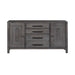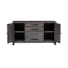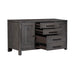 Invite clean lines into your home with the Modern Farmhouse credenza. Crafted with poplar solids and knotty white oak veneers, this piece features a geometric high-low door pattern, a lateral file, and fully stained full extension drawers. This piece is available in an alternative finish, sure to be the perfect addition to any home. The dusty charcoal finish with heavy distressing accompanied by washed brass elongated hardware ties any space together effortlessly.