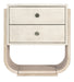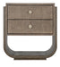 Symmetrical, monochromatic and timeless with a luxe mixture of materials, the Modern Mood Two-Drawer Nightstand is a statement piece. The case is crafted of Oak Veneers in a wire-brushed dark Mink finish, the drawer fronts and top are wrapped in raffia and trimmed in metal with warm brushed-nickel knobs. Drawers are smoothly-operating and self-closing.