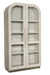 Architectural and timeless with a luxe mixture of materials, the Modern Mood Arched Display Cabinet combines Oak Veneers, Metal and Glass in a stunning statement piece. Crafted of Quartered Oak Veneers with wire-brush detailing in the softly-sophisticated Diamond finish, the cabinet has two wood-framed tempered glass doors with soft-close hinges and magnetic catches. Behind the doors are two adjustable wood-framed glass shelves with plate grooves and two puck lights with a three-intensity touch switch on the right side of the back panel. The metal-wrapped base and the metal bar pulls are both in a warm pewter finish, and the bar pulls are accented with leather.