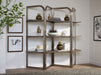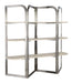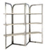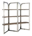 Architectural and artistic with a luxe mixture of materials, the Modern Mood Etagere has three fixed shelves crafted of wire-brushed Quartered Oak in the Mink finish with dark, earthy brown hues with notes of black. The shelves are surrounded by a shaped brushed metal frame in a warm pewter-colored finish. Finished all the way around, the shelf can be used from either side and can float in a room.