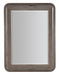 Architectural and timeless with a luxe mixture of materials, the Modern Mood Beveled Landscape Mirror has a rectangle shape with rounded corners, a wood-finished exterior, metal inlay and raffia-wrapped inside frame. The wood is finished in the serene Diamond, featuring wire-brush detailing with crystal-like alabaster and pewter hues for a soft sophistication.