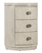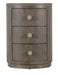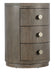 Serene, symmetrical and softly-sophisticated, the Modern Mood Round Nightstand has a clean modern profile and luxe mixture of materials. Offering three self-closing drawers, the nightstand is crafted of Oak Veneers in a crystal-like Diamond finish and has a striking matched veneer top. With metal trim, the knobs are accented by leather.