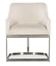 Cozy chic meets sleek sophistication with the Modern Mood Upholstered Arm Chair. The tactile and textural Boucle fabric in Inverness Natural contrasts with a brushed metal base in a warm pewter finish. Fully upholstered seat, back and arms.