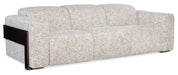 Enjoy personalized comfort with the Atlas Power Sofa with Power Headrest. Featuring power recline and power headrest capabilities, this sofa blends functionality with contemporary design. The fabric, combined with wood accents, creates a striking contrast, while the widescale track arms and plush cushioning ensure relaxation. Perfect for modern living rooms, this sofa offers both style and support.