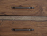 5 Drawer, Chest. The Teca collection captures the essence of transitional design by seamlessly blending metal and wood elements. It is meticulously crafted from sustainable mango wood and teak veneer with a translucent multi-step brown finish.