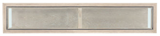 A brilliant blend of materials, the Nouveau Chic Rectangle Console Table combines Oak Veneers, tempered glass and a metal frame. The beveled-edge glass top looks down onto the middle wood shelf and bottom shelf featuring a dramatic sunburst veneer pattern. Finished in the serene Sandstone finish with light wire brushing for tactile appeal. With a slim 16-inch depth, this piece adds design and function to even tight spaces.