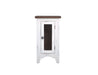1 Metal Mesh Door Chairside Table. Introducing our Pueblo collection, crafted from solid pine wood. This rustic collection is the perfect addition to bring your dream space to life. It features a hand-distressed finish in black and brown on the tops.