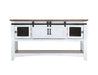 2 Sliding Doors, 2 Metal Mesh Doors Sofa Table. Introducing our Pueblo collection, crafted from solid pine wood. This rustic collection is the perfect addition to bring your dream space to life. It features a hand-distressed finish on the tops.