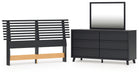 | Details | B1013-157: Made with engineered wood (MDF/particleboard/plywood) and decorative laminate for the right balance of affordability and durability, Matte black finish with subtle replicated wood grain, Decorative laminate replicates natural or man-made material surfaces with consistent color, pattern and texture, ¼" bolts (not included) are needed to attach headboard to your existing bed frame, Minor assembly required, B1013B11: Includes dresser and mirror, Made with engineered wood (MDF/particleboard/plywood) and decorative laminate for the right balance of affordability and durability, Matte black finish with subtle replicated wood grain, Decorative laminate replicates natural or man-made material surfaces with consistent color, pattern and texture, 6 smooth-gliding drawers, Drawer interiors are lined with a faux linen laminate for a clean, finished look, Integrated drawer pulls, Framed front and pilasters, Mirror attaches to back of dresser; can also be mounted on wall horizontally or vertically, Safety is a top priority, clothing storage units are designed to meet the most current standard for stability, ASTM F 2057 (ASTM International), Drawers extend out to accommodate maximum access to drawer interior while maintaining safety, Minor assembly required, | |