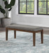 The perfect addition to your dining room, hallway, or bedroom, the Quinn Bench offers clean lines and a gray 100% polyester fabric with plush foam cushioning that ensures a comfortable seating experience for you and your guests. The warm chestnut finish over Asian hardwoods and oak veneers adds a touch of elegance to any space. Designed with versatility in mind, the Quinn Bench can be used in a variety of settings. Place it at the end of your bed for a cozy reading nook or in your hallway for a convenient spot to put on your shoes. Use it in your dining room as a stylish seating option that complements your decor. The gray chenille fabric is neutral enough to add to any room for a simple, elegant touch anywhere. With its sturdy construction and timeless design, the Quinn Bench is built for comfort, style and utility, but most important, it is built to last. Upgrade your space with this stylish and practical bench today.
