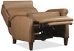 The Randall Recliner in leather offers classic elegance with modern functionality. Featuring power recline, a pop-up headrest, and USB port, this transitional design is anchored by rolled arms and dark wood tapered legs. Its bustle back and rich leather make it a refined yet cozy addition to any traditional or mixed-style interior.