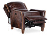 Embrace timeless luxury with the Livingston Power Recliner in Homestead leather from Hooker Upholstery. This traditional recliner features a power headrest and USB port, paired with a dark wood finish for a classic look. Its bustle-style back and tapered wood legs exude elegance, making it a perfect addition to formal living rooms. Transform your space with this exquisite blend of comfort and style.