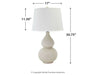 | Details | Clean with a soft, dry cloth, Assembly required, 3-way switch, Made of ceramic with fabric modified drum shade, 1 type A bulb (not included); 150 watts max or LED equivalent; UL listed | |