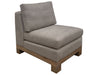 Wooden Frame & Base, Armless Chair. With its chunky, wide silhouette, the Samba collection infuses your living room with a touch of traditional charm. Supported by a sturdy frame crafted from solid pine wood, it rests gracefully on low-profile block feet with a rich brown hue.