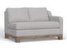 Wooden Frame & Base, Sectional Right-Arm Loveseat. With its chunky, wide silhouette, the Samba collection infuses your living room with a touch of traditional charm. Supported by a sturdy frame crafted from solid pine wood, it rests gracefully on low-profile block feet with a rich brown hue.