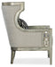 She's a modern gal: up to date and sumptuously scaled. The Sanctuary Debutant Wing Chair has a classic pedigree in historic traditional and has been streamlined and modernized. A true style statement, the Debutant shows off three different performance fabrics: The inside back and seat is in Celestial Ice, and the outside back is in Sequins Pearl, while the pillow is in a zebra print for extra fun.