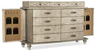 With a luxurious platinum patina, the Diamont Dresser is captivating and charming. Delightfully functional, there are jewelry doors on each end: doors with five jewelry hooks and 4 removable mesh jewelry bags attached to each door. There are eleven drawers, and the top 3 have pristine white interiors, while the top left drawer has a cream-colored removable felt liner and the top right drawer has a cream -colored removable jewelry tray. The bottom two drawers are cedar lined. Crafted of Poplar and Hardwood Solids with Oak Veneers, the Diamont Dresser is finished in Jewel, a silver with rich undertones of gold and champagne. The decorative jewelry-like hardware is in an antique silver color.