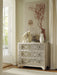 Timeless and romantic, this elegant chest is purely pretty with its fretwork front combining a creamy Pearl Essence finish with Antique Mirror and a soft silvery gold accent. Three drawers; the bottom drawer is cedar-lined.