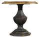 The sculptured silhouette of this timeless table is punctuated by a two-tone finish. The base is in Antique Coffee, a vintage black with tan rub-through, and the top is in Antique Hickory, a pecky Hickory golden brown revealing the character of the Poplar with Hardwood Solids with Pecky Hickory Veneers.