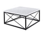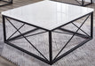 A modern occasional collection featuring a unique modern latticework iron base with stunning white marble tops. This mixed media set feels light and airy but its marble tops give extra durability for heavy duty use in the toughest environments, the family room. Bring style and beauty to your living room tables with Skyler by Steve Silver Company.
