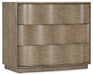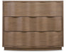 A stylistically versatile dresser blending natural textures with a light-and-airy modern aesthetic, the Sonnet bow-front Bachelors chest has 3 push-open drawers with shaped-wave drawer fronts. Crafted of Quartered and Cathedral-Cut White Oak Veneers, it has a light earthen-toned finish. The top drawer has a cream-colored removable drop-in left liner. The plinth base adds chic modern appeal.