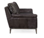 Sleek and modern yet plush and inviting, the Kador Leather Sofa’s seat and back has vertical channels, complemented by dramatic angular arms. The off-the-floor sofa is covered in the Debonair Graphite aniline top grain leather, and the legs are in a dark wood finish.