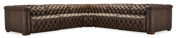 SS - Savion Deux 5 Seat Sectional With Four Power Recliners And Six Power Headrests - Dark Brown