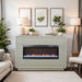 The Stardust Fireplace Mantel features clean lines and understated design that will transform any room into a modern, sophisticated sanctuary. This unique piece includes a fireplace insert with clear crystals and traditional log set and will heat up to 400 sq ft. Get set to get cozy while binge watching your favorite movie or TV series.