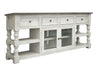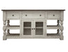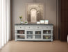 Stone - 80" TV Stand / Console With 4 Drawer And 2 Glass Doors - Antiqued Ivory / Weathered Gray