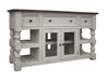 3 Drawer 2 Glass Door TV Stand. Exuding farmhouse chic with just the right touch of old-world charm, the Stone Collection is meticulously crafted from solid pine wood. The wood is lightly distressed, showcasing a white finish and complemented by weathered gray tops.