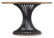 A network of metal chords cinched in the center form the table's pedestal base. Forty-eight-inch tabletop completes the look, pending chairs of your choice. All Studio 7H dining chairs are candidates!