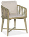 Create a calming resort-inspired retreat in your home with the laid-back Sundance Barrel Back Chair. The appealing lattice design of the cane seat back combines with a loose back pillow and an upholstered seat covered in the Zuri Cream performance fabric to invite you to linger and relax. The legs, arms and X-style stretcher are finished in the light natural Driftwood finish with distressing including sandblasting and bleaching.