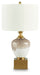 | Details | Made of brown and white art glass and metal with drum hardback fabric shade, Goldtone metal, 3-way switch, 1 E26 socket, type A bulb recommended (not included); 150 watts max or LED equivalent; UL Listed, Due to the finishing process of this product, some variations may occur, Minor assembly required; simply attach preassembled shade to lamp base | |