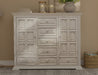 7 Drawer 2 Doors Mule Chest. Drawing inspiration from transitional design, the Terra Gray collection embodies the effortless elegance of its clean, sturdy shapes and the charming rustic grain of solid pine wood. With a tasteful finish, this collection represents a harmonious fusion of modern and traditional elements, making it a timeless addition to your home.