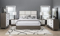 Angular modern shapes, organic textures and mixed materials combine with a gray, cream, and metallic color palette to create a crisp modern look in the Terra Luna whole home furniture collection. The deeply wire-brushed Nightfall finish gives a tactile, dimensional texture, contrasting with the White Cloud case fronts and upholstery and metallic-finished table and chair bases. Over scaled, jewelry-like Polished Nickel hardware adds a glam touch. The clean silhouettes paired with natural color tones and organic textures give a minimalist yet inviting appeal.