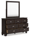 | Details | B441B2: Includes panel headboard, footboard, rails and slats, Made with hardwood solids, engineered wood veneer and MDF substrates, Dark brown finish, Floating panel headboard, Picture frame footboard, Foundation/box spring required, sold separately , Mattress available, sold separately, Assembly required, B441B1: Includes dresser and mirror, Made with hardwood solids, engineered wood veneer and MDF substrates, Dark brown finish, Metal bar pulls with bright nickel-tone finish, 7 smooth-gliding drawers with dovetail construction and metal center guides, Drawer interiors are lined with a wood grain laminate for a clean, finished look, Top moulding on dresser, Mirror attaches to back of dresser, B441-92: Made with hardwood solids, engineered wood veneer and MDF substrates, Dark brown finish, Metal bar pulls with bright nickel-tone finish, 2 smooth-gliding drawers with dovetail construction and metal center guides, Drawer interiors are lined with a wood grain laminate for a clean, finished look, Top moulding, | |