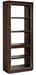 Add stylish storage to any space with the House Blend Etagere with the sleek combination of a Dark Roast finish over Quartered Ash Veneers and silver metal trim. Measuring 30 ¾ inches wide by 14 inches deep, the etagere is versatile for many spaces and features 3 adjustable wood shelves and one fixed shelf.