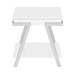 Midcentury modern design meets glam styling in the Zena End Table. Canted chrome legs frame the white finished wood center in a neutral but not boring complement to any decor. The perfect side table companion to your favorite chair, this versatile table also can be used between upholstery or as a glam nightstand. Modern and sophisticated, Zena is a great accent for any room.